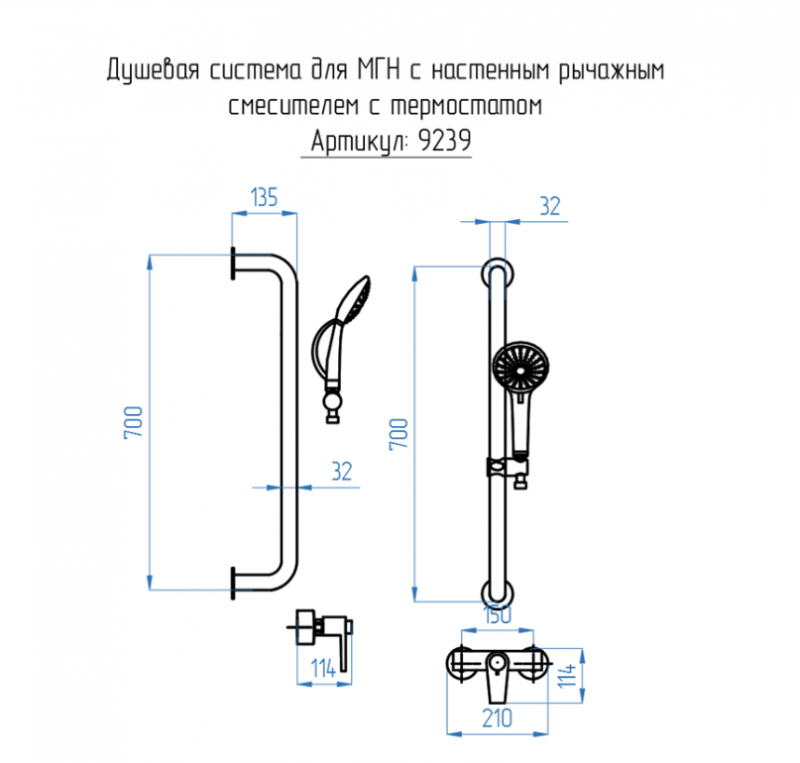 Душевая система для МГН с настенный рычажным смесителем с термостатом 9239