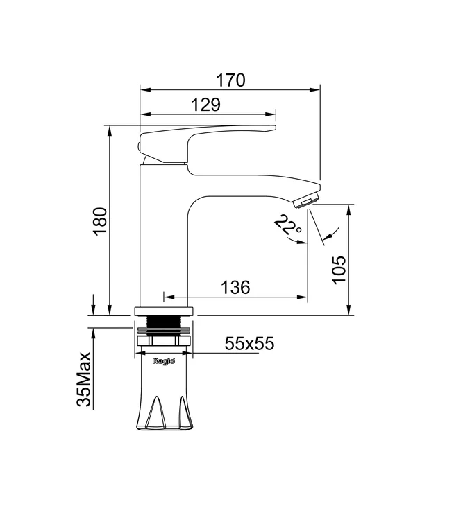 Смеситель для умывальника, сатин золотой R01.10.03 Raglo Raglo